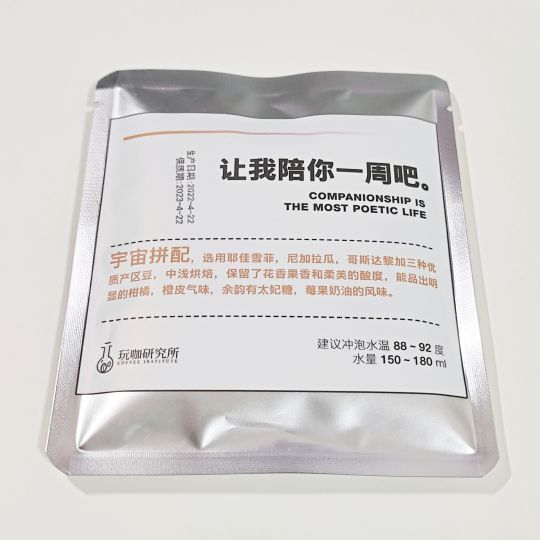 听说又有新商家入驻千岛了,当天就在这家下单买了个挂耳套装试喝。既然都喝挂耳了那也不用秤了,直接上纯懒人冲法。 开水壶烧开晾两分钟,注满水,等漏一半的时候再注满。共注水三次。 [宇宙拼配] 产地:耶加雪菲、尼加拉瓜、哥斯达黎加。 烘焙度:中浅烘焙。 官方风味描述:奶油、太妃糖、莓果。 入口能尝出埃塞豆子的果酸味道,很淡,应该比例不高。有略微的柑橘酸甜和奶油口感。 总体口味还不错。口感圆润顺滑,酸度很柔和,没有苦味和烟熏味道,适合入门人士和轻口味。但缺陷在于风味太平淡,对于9元一包的售价来说,非常不值。