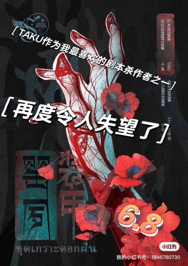 作为万国本格系列的第三部,本人作为玩了taku接近20本的资深粉丝,但是就这一部就内容而言真的又让人失望了,taku在我看来一直是剧本杀圈中最有创意的作者,然而最近的这个系列再也找不回第一部黑红梅方给人的感觉了,也找不到那种让人眼睛一亮的感觉! 逻辑7.0 人物角色都比较单线,因为设计了一个相对比较复杂的身份网,玩家之间的互动其实并不是很多最重要的是这已经完全不是硬核本了,很多逻辑线更多是拼图式样的还原,taku式的还原本,但是整个推理运用了大量基本演绎法,整个让我这个不喜欢基本演绎法的人实在很难与投入。 唯一的优点在于,整个剧本的推理并不是很难,很多东西玩家都能很快get到。 故事 8.0 不得不说taku在讲故事方面还是非常有一套的,一个老套的毒贩故事也被他讲出了一点新意,除了那个比较雷人的真相。 剧本从押送一个大毒贩开始,慢慢展开了众人的旅程,大家因为各自立场和想法的区别,在这一过程之中有人要杀 有人要救,还有人…… 然而整个故事人物还是比较单线,角色之间互动性和关联性非常弱,没有产生很好的化学反应。 结构 6.5 作为一个独家本,这个本体量上说是非常不足的,内容的呈现方式上也是乏善可成吧。不但没有,并没有那种让人耳目一新的感觉,让人感觉还是套路化,从一开始众人就会互相怀疑的东西最后也是真实,剧情的转折上也没有太多让人出乎意料的地方。基本上整体的水准大概和西首尔差不多在一个级别。 最后补充一句 本人玩的这一车是千岛在凤凰社的测车,演绎剧情的设计以及增加了很多原剧本没有的内容,不管从车友还是dm可以说是一个非常高质量的车,然而本人的测试一向就剧本本身内容进行测评,这个本在千岛评分也只有6.8。但是如果大家要玩,完全可以相信凤凰社。