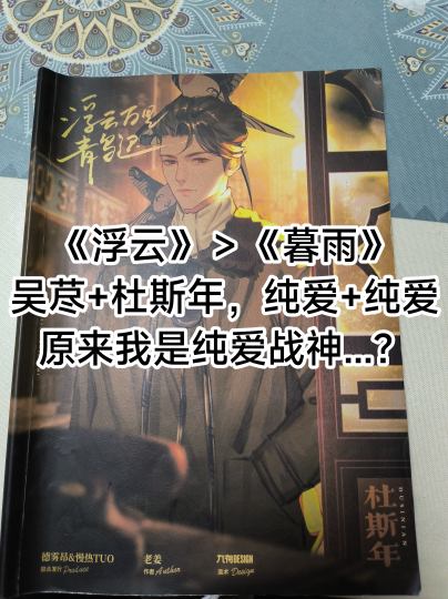《浮云》>《暮雨》 《浮云万里青鸟迟》和《暮雨几点照夜清》据官方说法是互为姊妹篇的关系,那《旗帜之下》是什么? 首先,很久之前就看到有评论说《浮云》和《红豆》很像,个人体验下来是基本毫无关联; 其次,相对于昨天体验的《暮雨》,《浮云》有以下优势: 1. 文笔变得通俗了; 2.演绎变得简单了; 3.在晚清后的民国 - 当代背景相对来说更好蹭线了; 4. 内容好理解导致输出变得相对容易了; 5. 能比较简单地搭非常适配的BGM; 同样,历史线还是相对比较重; 本作拿到飞行官纯爱杜斯年,对比《天地藏春》王昕杰,杜斯年是不尬的、实际行动霸道又很酷的大少爷角色,不知道强了多少倍; 本车是车多数二刷纯女车,果然3男3女的老本车会演变为几乎6女车,这可能是会演变为一种必然的趋势,就是不知道剧本杀作者会不会再像博君知闻《不喜》一样再次创作出全女本; 其它角色来看, 杜若的线可能不具有普适性,且非常难吃到。可以理解为是一种,委屈 + 全程付出 + 负重抗压线?这种几乎完全不求回报的付出,仅仅是出于“我喜欢你,那么我就要对你表现出来,且不求回报。”的心态,现在的男性会出现【避舔狗】的趋势,所以其实是非常容易不理解 + 坐牢的;周曼云其实,在最后结尾之前,我还不太明确到底她是一直喜欢沈知时,还是喜欢过杜若,这点非常之不明确; 陈燕生 + 宋念,东北人可以尝试一下,线貌似很多的样子。 顾清怡,那当然是杜斯年的导航塔啦。 最后,也是比较可惜的一点是,没给我的顾清怡最后表演一段火焰变玫瑰的把戏,如果真能实际操作出来,那应该会非常炫酷。 总结:【杜若】慎拿,仍然是历史洪流下的爱情。这部作为之间邮局的第一部,反而好像没发挥出来《暮雨》呈现出的【陌生社交】属性,不知道这是不是不同店家的开发不同导致。
