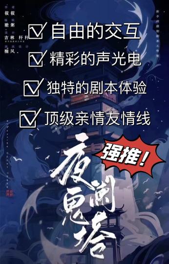 夜阑鬼塔——成年人的美梦制造机,在塔里你可以永远做小孩。 体验角色:紫衣女子 体验店铺:长沙云中剧场 时长:7h 终于打上了这个一坑难求的鬼塔~喜欢在塔里做一个幸福小女孩😭 长沙鬼塔位置一坑难求真的是有原因的,云中的演员都好厉害也好认真!能感受到在这7小时里,他们真的是我们的亲人朋友,会注意到玩家的每个细节,记住玩家说的每句话,根据玩家的态度来决定输出和结局。所以就算开了很多很多车,很多玩家也会有独属于自己的回忆。这点会比常规走流程的剧本杀要打动人得多,所以摘塔开到现在,长沙的车位仍然是最难上的。 再说说文本(虽然不重要),最近看到太多帖子批评文本了,只能说千人千面,我和身边的玩家聊下来都挺喜欢摘塔的文本的,简单但清晰,不是那种字数很多流水账一样看了很久看完什么都不记得的本。文字中处处透有遗憾的感觉,看完还有点怅然若失,nf人还蛮喜欢这种文风的。 摘塔打下来,感觉摘星更多的侧重是成长,而鬼塔的主题则是家和亲人,摘星的表现形式还是跟剧本杀比较类似,鬼塔已经脱离剧本杀,完全接近rpg了,喜欢与npc交互可以冲鬼塔。在鬼塔里,只有理解与爱,子女理解父母,父母爱子女,朋友间没有嫌隙,真的是成年人的美梦~ 说说角色,在摘塔里一定要吃亲情或者友情,纯爱战士不适合摘塔。 女生: 紫:父母(npc)/哥哥/爱情付出,虽然爱情很烂但整体蛮幸福的,专属npc很多。 白:类父(npc)/爱情大付出,视角低,有摘青白联动。 红:友情(npc)/哥哥/爱情,出生悲惨被大家救赎的线。 蓝:女儿(npc)/爱情/友情(npc),心怀苍生的神女。 男生: 白:友情(npc)/妹妹,非常非常抗压的角色,基本走到哪都要被骂。 灰:类父(npc)/君臣(npc玩家都有) 黑:父母(npc)/妹妹/爱情,应该是男生里唯一不用抗压的角色。 蓝:女儿(npc)/爱情/友情(npc)