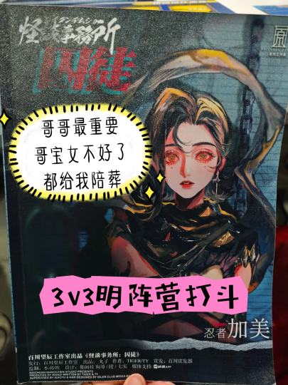 剧本名:怪谈事务所:囚徒 人数:6人(可反串) 类型:机制 阵营 跑团 dm:黑白 【人物】 四介天阵营(怪谈事务所) 吸血鬼-黑目❤️忍者-加美 元素师-琼斯 羽烬生阵营(魔法启示录) 巫女-雅合❤️葬花师-哲野 机械式神-天痕 【体验】 和红杉剧情有强联动,没打过的容易看本一脸懵逼,但是本挺重要的。 跑团以“事件跑团”为核心,有红色事件和蓝色事件,红色事件一回合结算,蓝色事件两回合结算,事件结算有的是个人战,有的是团队战。一共3轮,有6个区域和打工区域可以选择,可以安排不同的雇员去不同区域获得不同奖励,与你有缘的地区还会触发特殊事件。想要参与事件会需要对应的声望、金币、能量和相应技能,如果卡牌的技能和地点所需不符,或者声望不够,都可以用功勋来代替,1差值对应2功勋,但金币和能量只能靠打工或者卡牌效果获得。一共有6个地点,声望到8,可以获得相应的SSR卡,完成任务或者回答对问题也可以抽卡。 抽卡按照金币+能量+声望的总数,每20点抽1张或者两张招募令抽1张,可以选保底阵营或者中立阵营,前期跑团小废物们就没赢过,被埋了两张阵营的sr,对面还喜提鬼斩,一怒之下连抽三张ssr,这就是恋陪的魅力,对面直接自闭想走人。 大机制一共三个阶段,前两个阶段只有一轮,三阶段一共两轮,每个人可以带人物卡8张+策略卡7张上场,但每轮的行动点只有3次,使用策略卡也会占次数,所以怎么和队友打combo,怎么不卡手牌,怎么搭配就很重要。初始备战阶段可以白嫖上1人,一个阶段结束下一阶段备战次数依次加1,但是三阶段只有一次备战,自由属性点可以给卡牌加天赋点,上限3个。胜利方式看哪方占纷争点多,相同情况下看占点分谁高或者直接将对方赶尽杀绝(屠边),通过占纷争点或者中立点可以获得buff,还有熟悉的地图崩塌。 在对方上来直接废了我角色卡的情况下真的沉默了,一个个大爹上场就放绝技,但是不到最后一刻不知道胜负,最后竟然靠我明堂横跨半个图踩在鬼斩脸上蹦哒抢下纷争点获胜,真的意想不到。