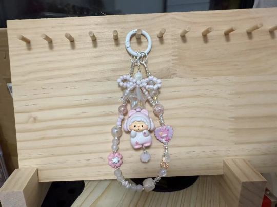 噜狗二代手机链,超可爱的粉色白色搭配,串珠精致,带正版萌粒樱花限定。手工DIY制作,珠子是光变树脂的,搭配水晶珠和小蝴蝶结,还有星星装饰。送手机垫片,喜欢的小伙伴私我嗷~两条包邮,多拍优惠哦! 有喜欢其他款式也可联系我私人订制噢[比心]保证做到你满意为止[送花]