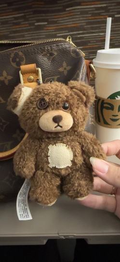 Michelle2025-08-23小野熊是破烂娃😂😂😂 去跟帖 列车上的小朋友跑过来说:阿姨,这么破烂的娃娃怎么还背出来。我说:啊,怎么就破烂了。小朋友说:眼睛补纽扣了,耳朵也坏了,肚子也补丁了。我:………