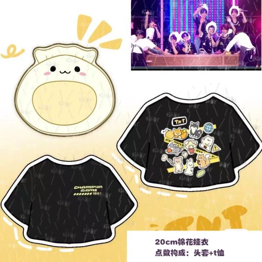 属性:时代少年团 娃衣大小:20厘米棉花娃衣 点数构成:头套+t恤 成团人数:100团
