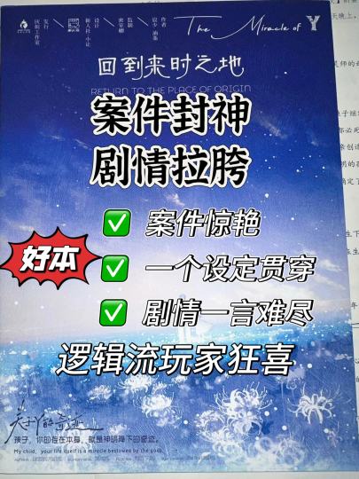 案件封神与剧情拉胯的两极体验… 打《关于 Y 的奇迹》前刷到不少好评,说 “最强单案名不虚传”,结果 10 小时玩下来,感觉案件爽到天灵盖,剧情却尬到抠脚,体验直接分裂成两半。 先夸夸最让人惊艳的案件部分。 这本就 3 个本,没繁琐线索卡,全靠设定推到底,这点真的好评!一个设定贯穿所有案件,不像有些本为了难而堆设定。 尤其是被吹爆的 “礼 1 案”,确实配得上 “最强单案” 的名头,5 个 NPC 的时间线排列组合,环环相扣的逻辑链让我盘得肾上腺素飙升,逻辑流玩家绝对会爱疯!!! 破冰的灯塔案难度适中,主要帮大家熟悉设定,观沧岛案则和剧情关联紧密,虽然难度不高但胜在衔接自然。 不过案件的 “理科属性” 也很明显,第三案我们车在有硬核玩家的情况下还盘了 2 小时,要是新手来玩估计直接坐牢。而且除了礼 1 案,其他案件就显得中规中矩,尤其是礼 2 案,不少人都表示 “毫无感觉”。 再说说让人一言难尽的剧情和立意。 人物关系图复杂得像豪门本,一层接一层的反转里夹杂着不少狗血爱恨情仇,刚开始吃瓜还觉得有意思,越往后越混乱,经常看着本问 “这人谁啊”“他俩又啥关系”。 最离谱的是核心设定 “归元礼” 和 “奇迹”—— 铺垫了 10 小时,死了那么多人守护的归元礼,居然是场婚礼? 妈妈创造的 “奇迹”,是因为怀孕没抑郁而终、难产死掉?最后主角 80 岁宇航员撞彗星拯救地球的结局,更是强行升华到尴尬。 角色方面虽然没有绝对边缘,但体验感差距不小。 视角四和五是剧情 C 位,纯爱 + 反转 + 信息位拉满;视角六前中期像旁观者,后期才有点重要信息;剩下几个角色则中规中矩。好在案件都是公共视角,谁能盘谁就是 C,这点多少弥补了角色差异。 这本对 DM 要求也超高,我们车 DM 吃透了本,扶车节奏很适合,后半程直接high起来了。 总结下来,《关于 Y 的奇迹》是本 “偏科严重” 的硬核本。 如果你是纯逻辑流玩家,只为了盘案件那一定要冲,礼 1 案绝对能让你爽到;但如果你在意剧情流畅度和立意共鸣,那最好慎选,免得像我们一样,案件有多惊艳,剧情就有多失望。 建议打本前放低期待,找个吃透本的 DM,体验感能提升不少。