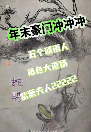 🙋新新新豪门怎么全是谜语人 当年紫藤夫人即视感回来了 ✅2.000000名不虚传 但是时至今日的我们已经长大了 🎯背景故事: 1914年民国三年清朝末年,战乱不断,鼠疫频发,医疗条件落后,人均寿命仅有 33-35,但男女婚姻普遍较早 🎯开局就是五个谜语人,大家集体失忆开始不说人话,要么就是不说人话要么就是通篇紫字,真的一头雾水 🎯 还原:第一幕开始,时间线就在1914年,但整体故事跨越很大,核心都有60年时间,5代人,真的是一团遭。一度真的就崩溃了,这也太乱了。但是豪门的乐趣就是这里! 找身份找爹找妈那是一定的,前期盘不出来因为真的是没有人名。后期只要关键线索卡一出,几乎就可以直接知道自己身份,但是这只是冰山一角。重要的事跨界百年的爱恨情仇啊!这才是这个本的大招 🎯推理:凶案数量不算多,但尸体数量相当的多。案件难度不高,线索指向很强,认真盘也都能盘出来 🎯 角色:感觉男生角色似乎更好玩(就视角)但其实大差不差,都是还原爹妈的故事 1⃣️污面男(比较简单) 2⃣️嫁衣女(紫藤夫人 彩蛋位) 3⃣️黑衣少年(恋爱脑1.0) 4⃣️蓝衫女(恋爱脑2.0) 5⃣️面纱女(觉醒位) 🎯新加入的洞穴探险跑团很有意思,真的是增加很多乐趣,给了不少惊喜 🎯就像名字一样,大量传说,精怪故事,也有小的暗含意思,倒是很特别 🎯《蛇聘》剧情与《紫藤夫人》大联动,是《紫藤夫人》故事的延续,主要也是解释了“紫藤夫人”的由来,以及交代了太平天国主线人物的后代情况,可以算是比较好的联动本 喜欢豪门的地方就是灵活度自由度很高,可以自己慢慢放盘,明明就是同样的内容,但是各种小细节可以发现奥妙 相比较之前上难度的豪门,人物关系相对没那么复杂,好就好在有一条很顺的时间线,顺着几代人盘下去都比较轻松 大家交流视角,就可以故事还原,猜出来大概故事,最后一个复盘又让大家更加惊艳