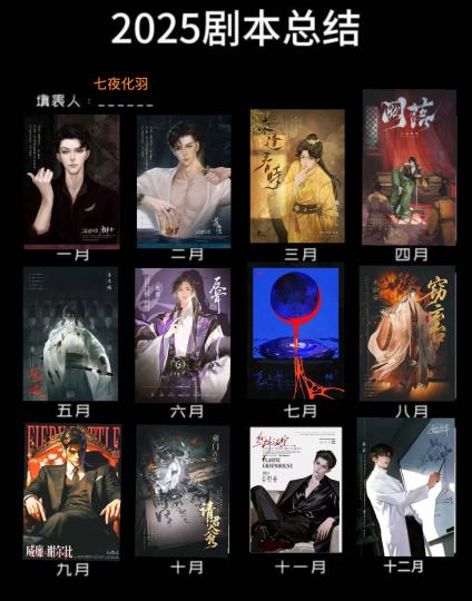 2025年即将过去,值此辞旧迎新之际, 容我总结一下今年跌宕起伏的剧本杀生活 什么top不top没必要硬排,很多本都挺low的,但还是希望有人玩吧,毕竟店家们的辛苦饭得吃,玩家有的选他们没得挑,如今有能力且认真搞内容的发行已经所剩无几,我们只能要求自己,就别强求别人了,也得承认是恋陪和互动剧场撑起了濒危的市场的半边天,但愿不是夕阳红。 水能载舟,望勿覆舟。 抄不抄袭,借鉴与否,挑事居多 英雄不问出处,我只问好不好玩 真正走进我心里的三幻神 按时间顺序不分排名先后: 《流氓叙事》真神级别的存在,文笔上乘,强情感,双性别双恋陪,高复刷率,就问你刷了几次? 羌青瓷,程聿怀,蒋伯驾,程走柳夺了多少玩家心久久走不出来? 《如故》流程王者级别,11-12小时只觉得长但不觉得累,人人有人设印象深刻,玩家大卡不复杂不会觉得自己是过流程的工具人,npc不抢戏,亲情为主,角色有想法有碰撞,爱恨都相当真切。 《窃云台》历史色彩厚重,情感线浓烈个人偏爱,纵然不能恋不能陪,但我觉得自己比npc重要,那么多的背负与不甘,痛恨与不舍,后劲十足我愿意与恶意视角差和解,是我打过最满意的“恋陪位” 完美人设羌青瓷,爱而不得卫子谣, 真心民女柳送君,意难平皇甫赤华, 还有你,最血性的犟种爱人程走柳, 三千年里最平静的疯子亡夫蒋伯驾, 七夜化羽在此敬上 谢过,你们的出现。