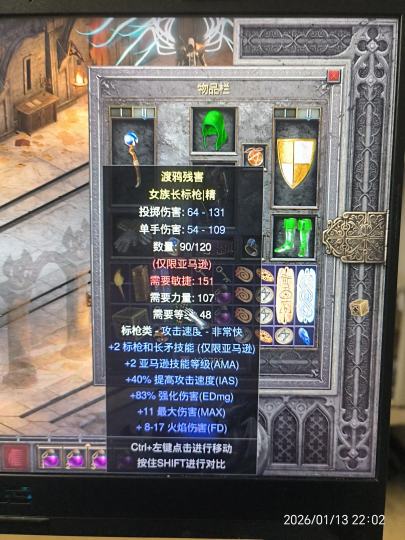 小菜鸟金标枪必须的词条 4技能或2加诅咒 40ias 高ed 大小伤 双吸 无形 数量回复 词条重要程度就是先后顺序 因为标枪有两个职业用当然之后可能也会出现投掷术士的玩法 如果有无形加数量回复要技能 如果有无形没有数量回复不要技能因为野蛮人的特性可以无损投掷 如果真有5重投掷术士的玩法那属性一定就是不要技能等级不要ias要fd双吸 没有自回不要无形 亚马逊 或是术士带无形金标枪一定都是为了凹上限不过有形金标枪词缀没问题下限也大于泰坦上限 不然除去野蛮人玩投掷或者泰坦标枪是不用无形的 金装带自回至少4根才能循环 泰坦两个就循环了 02-22・河北