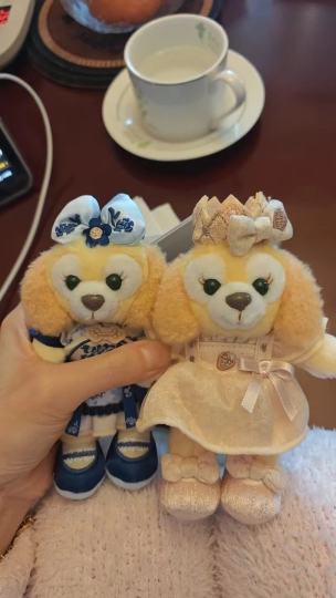 这两只可琦安(CookieAnn)毛绒公仔分别身着青花瓷主题和梦幻庆典主题的精致裙装,细节处尽显匠心,蓝白相间的刺绣与米金色的亮面材质相得益彰,头饰上的花朵与皇冠造型更是点睛之笔,完美还原了角色的甜美气质。作为迪士尼达菲家族的人气成员,可琦安以黄色小狗的形象深受喜爱,这两款公仔不仅保留了其标志性的圆润脸庞与温柔眼神,更通过不同风格的装扮展现了多样的魅力,无论是摆放在书桌、床头,还是作为礼物赠送,都能传递出满满的治愈感与仪式感。