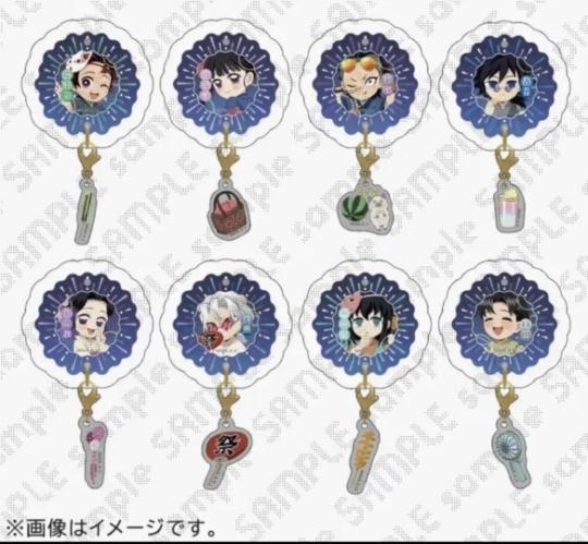 「夏天的风,吹来鬼灭の浪漫~」 八款Q萌角色×夜光花火设计✨ 蓝底放射纹+波浪白边,日系感拉满! 吊坠有西瓜、团扇、小风扇…祭典氛围直接拿捏🎐 (悄悄说:夜光款晚上超梦幻!)