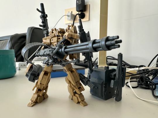 eEXM-17BU 陆战型阿鲁特战场改进型 所属阵营:地球联合军 代号:装甲伐木工 武器:重型转轮机枪一挺,无后坐力炮一门,战斗步枪一挺,大威力手枪一把,格斗刀盾一套,榴弹发射器一具,折叠式光束炮一把 数据:格斗6,射击15,结构10,机动6 设定:大规模装备的陆战型阿鲁特的战地改造升级式样。装备了多种射击武器,可以对敌军集群进行有效的火力压制。同时无后坐力炮和光束炮也能对敌方重装甲单位进行打击。附带的多功能背包上搭载有可替换的武器以及大量的弹药补给,可维持其在前线进行长时间的持久作战