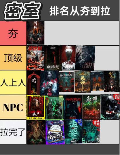 个人喜好!!密室排名从夯到拉!
