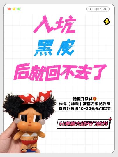 恭喜【 @Raphael @酱油味草莓蛋糕🍰 @๑ᵒᯅᵒ๑ 】获得「10元无门槛券」1,恭喜【 @守护星星人 @喜乐万事宜 】获得「20元无门槛券」1,恭喜【 @猫咪11💖 】获得「30元无门槛券」*1,期待你们创作更多优质内容! 黑皮哭娃,黑皮kitty,黑皮sp,我就好这一口黑的... ⏰活动时间 3.17-3.23 📝参与方式 点击右上方【跟帖】,晒出你家黑皮崽崽! 🎁活动奖励升级‼️ 我们将从参与跟帖的岛民中随机抽取3位送出【10元无门槛券】*1 在点赞量超5的岛民中抽选2位送出【20元无门槛券】*1 在点赞量超10的岛民中抽选1位送出【30元无门槛券】*1 🎉新增话题升级奖励‼️ 发超赞文案,被官方翻牌就有奖! 成功被官方跟帖升级,即可获得10 元无门槛券一张~ ⚠️注 发布内容如涉及抄袭或与主题不符,奖品将不予发放