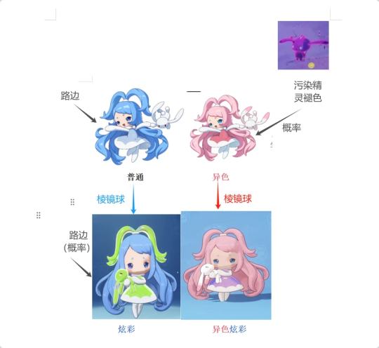 一张图告诉你,什么是异色,炫彩,异色炫彩! 异色:整体固定颜色。【可理解为不同肤色】 炫彩:局部随机颜色。【可理解为局部染色】 简单来说,炫彩可在大世界小概率遇见,或通过棱镜球捕捉普通宠物,强制变炫彩。 异色只能通过污染精灵褪色,概率出现。