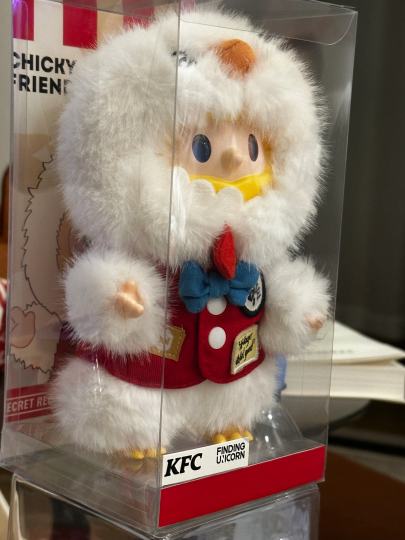 随机男子10103-28 发布在 # 晒美图😎给奇奇兽做了个展示盒 去跟帖 KFC x FARMER BOB联名的奇奇兽 软fufu的白色绒毛+经典红西装,连小领结都精致到犯规 谁能拒绝一只会卖萌的肯德基上校小鸡仔! #KFCxFARMERBOB #奇奇兽 #潮玩分享 #毛绒控上海