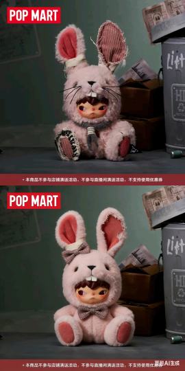 这哪里是兔子,看到这图片就像一只老鼠。 毛绒的脸长得尖嘴猴腮的,完全就是老鼠头,胡须也老长。身上的毛像菜市场粘满尿打结的兔子,耳朵更不吐槽了,就算是阔耳兔,半截耳朵埋在脑袋里面,露出来的部分就像老鼠耳朵长一点而已! 哎,这真的一点设计感都没有,就是来圈钱的吧! 这设计师还不如随便ai的好看,扎心了。